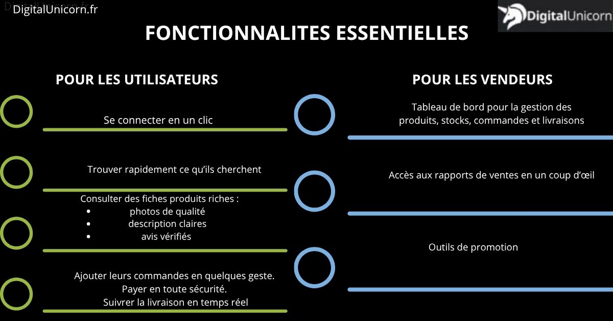 Posez-vous aussi des questions géographiques : visez-vous les États-Unis ou le marché européen ? Sachez que vos utilisateurs s’attendent à des options de paiement rapides, à des services de retour simplifiés, et à une recherche fluide.