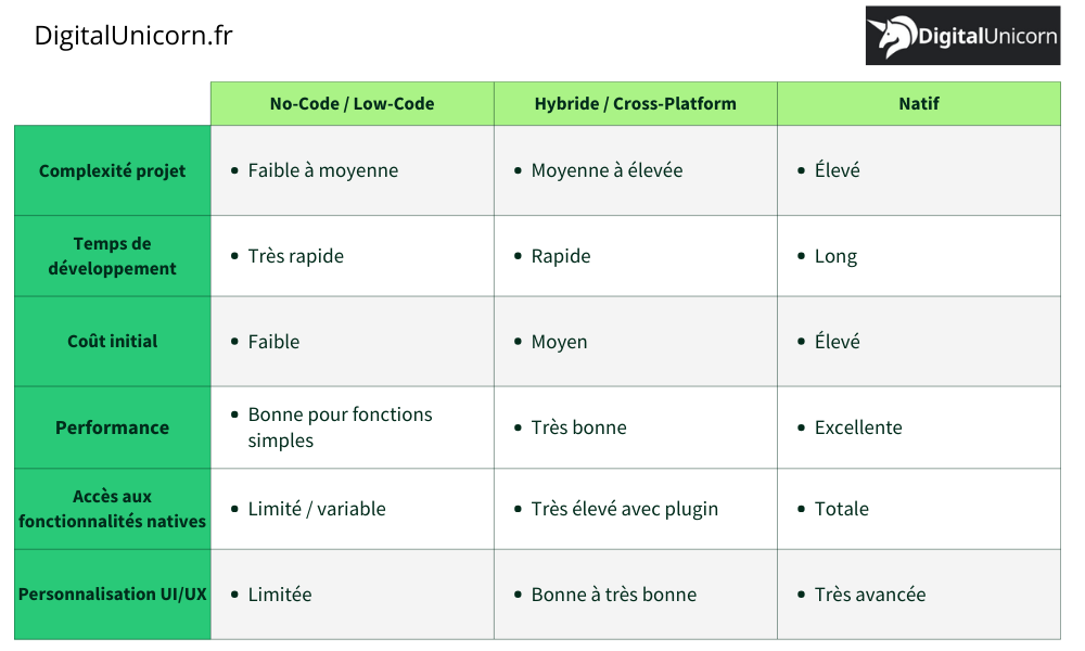 Pour vous aider, notre agence mobile Paris DigitalUnicorn vous présente les meilleures plateformes pour développer une application mobile avec les comparatifs.