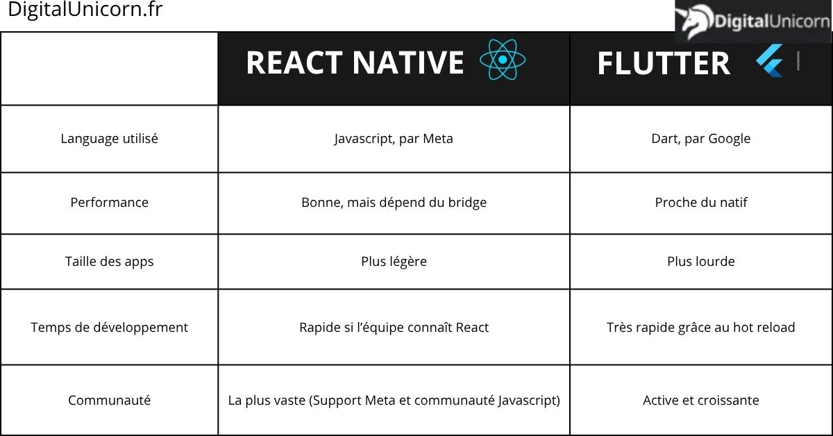 Découvrez en un clin d’œil les principales différences entre Flutter et React Native.